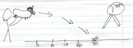 In order to win, you must throw the uni-sheep at a parabolic curve of y=-x/3+30.