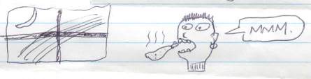 Manny, the turtleneck-wearing chicken drumstick eater, stared at the moon and thought about a mountain range.