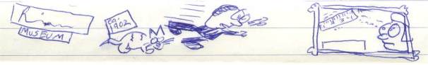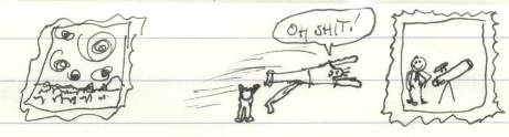 In the museum, the man in black tripped over the antique cat and landed in the portrait of Galileo.